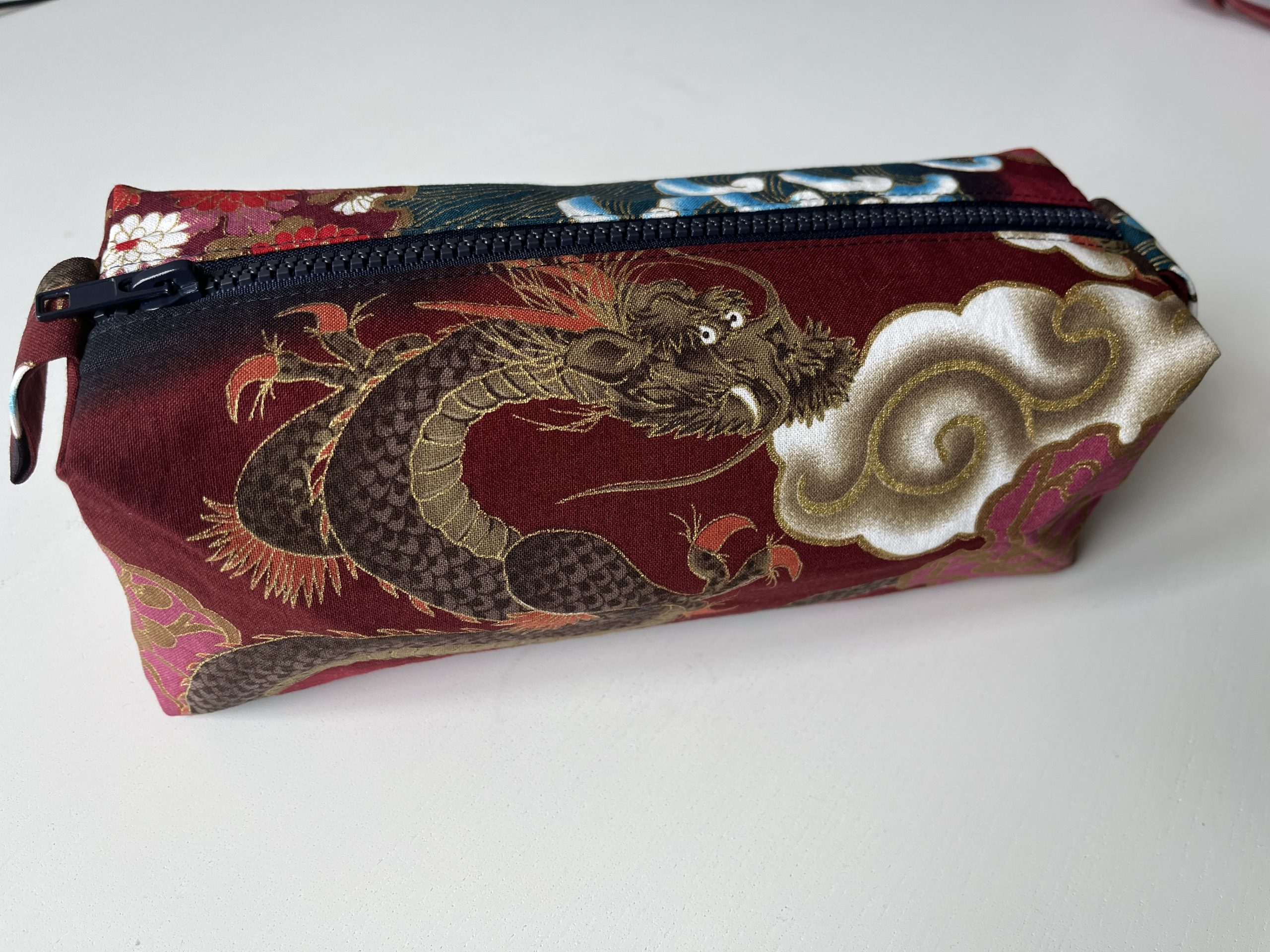 trousse d’écolier en tissu japonais bleu motif dragon